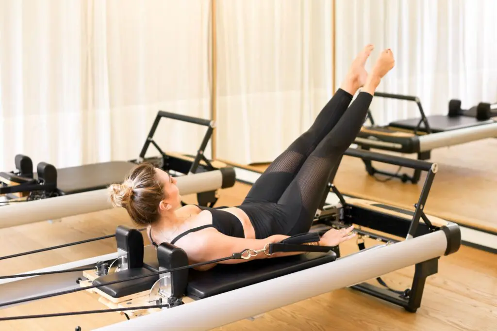 Reformer Pilates uses a specialised apparatus—the Reformer—consisting of a sliding carriage, springs, straps, and pulleys. The spring resistance can be adjusted to increase or decrease difficulty, making Reformer suitable for beginners through advanced practitioners.